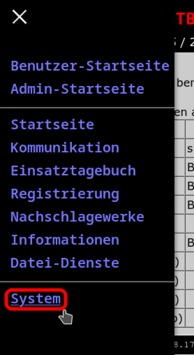 Im Pull-Down Menü den Punkt „System“ auswählen.