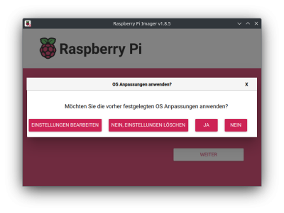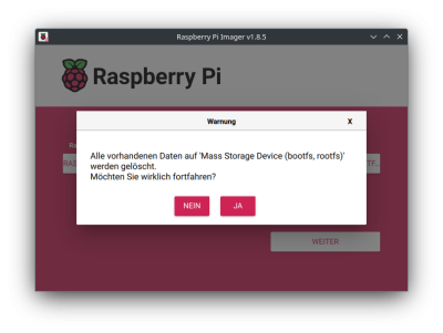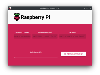 - Nun wird das OS-Image aus dem Netz frisch heruntergeladen und auf die Speicherkarte / den USB-Stick geschrieben.
