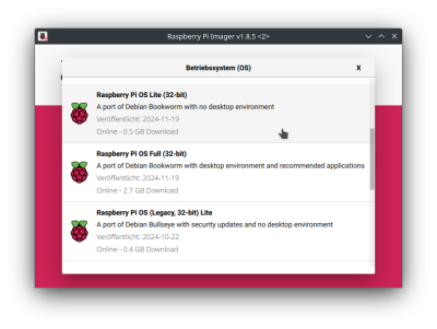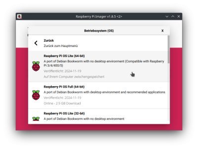 Für alle anderen Raspberry PI bitte die 64bit LITE Version wählen!