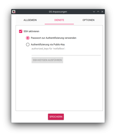 SSH aktivieren & Passwort zur Authentifizierung verwenden, SPEICHERN!!!