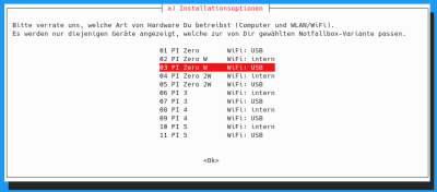 - Den Typ des Raspberry PI auswählen: Bitte unbedingt auf den richtigen Typ achten!