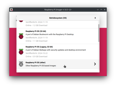 - Den Raspberry PI Imager für das eigene Betriebssystem herunterladen, installieren und starten.