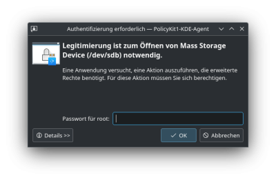 Sicherheitswarnung mit JA beantworten, bei Linux-Systemen Root-Passwort eingeben