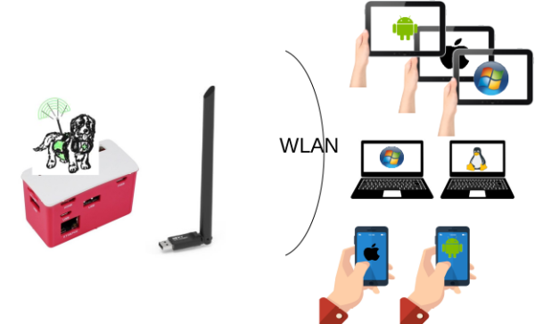 In einem Dorf, einem Ortsteil, einem Stadtteil werden im Einsatzfall (egal welchem) an speziellen Orten Notfallboxen aufgestellt werden, um möglichst viele Hotspots für die Menschen bieten zu können. Je mehr solche Notfallboxen auf der Fläche existieren, um so besser - da zum einen mit einer gewissen Ausfallrate beim Aufstellen gerechnet werden muss und zum anderen die Akkus ja auch irgendwann zur Neige gehen.