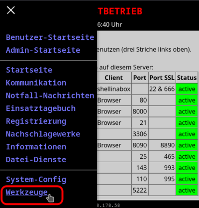 Ein anderer Weg, wie man an die Funktion „File-Transfer“ kommt, findet sich in der Liste der Werkzeuge. Der anschliessende Arbeitsweg bleibt aber vollkommen identisch zu dem, was wir schon gesehen haben.