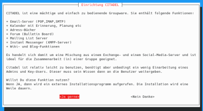 CITADEL ist eine komplexe Groupware (Software zur Gruppenzusammenarbeit) und muss unbedingt separat konfiguriert werden.