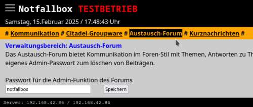 Hier kann das Admin-Passwort für das Forum geändert werden (Standard: notfallbox).