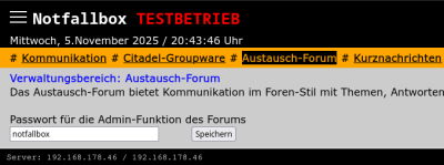 Hier kann das Passwort für die Admin-Funktion der Kurznachrichten geändert werden (Standard: notfallbox).