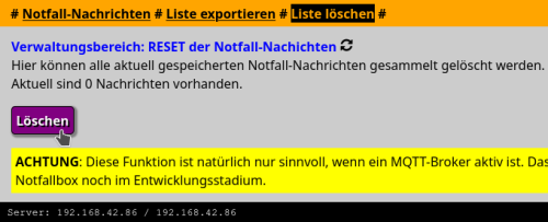 Natürlich kann man die Liste mit den Notfallnachrichten auch löschen, ohne dass man in die Datenbank einsteigen muss.