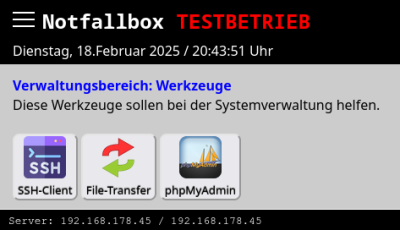 notfallbox erhält man VOLLZUGRIFF auf die Notfallbox. Der Benutzer „notfallbox“ hat **sudo-Rechte*. Daher bitte keine Experimente, wenn man keine Linux-Kenntnisse besitzt!!!