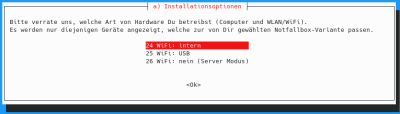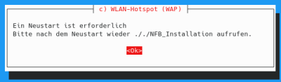 wget https://notfallbox.info/download/NFB_Installation && chmod 777 NFB_Installation && ./NFB_Installation- Abfrage, welche WiFi-Konfiguration verwendet wird