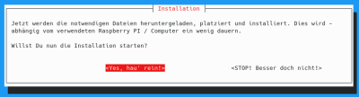 - Sicherheitsabfrage: An dieser Stelle entscheiden wir, ob die Notfallbox nun installiert werden soll, oder die Installation „schadenfrei“ abgebrochen wird.