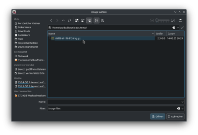 - Nun wird das zuvor gespeicherte Notfallbox-Image vom eigenen Computer und auf die Speicherkarte / den USB-Stick geschrieben.