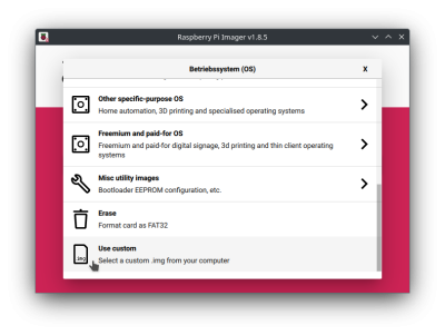 - Den Raspberry PI Imager für das eigene Betriebssystem herunterladen, installieren und starten.