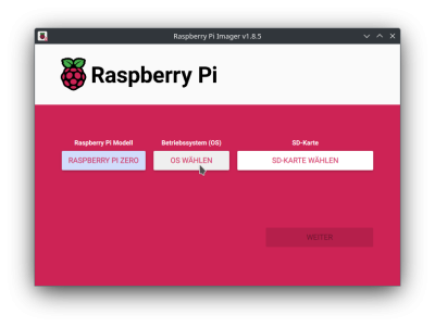 - Raspberry PI-Typ auswählen, OS auswählen: