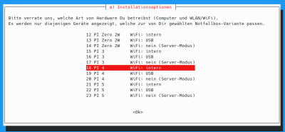 - Bitte nun den passenden Raspberry PI Computer mit der gewünschten WiFi-Konfiguration auswählen.