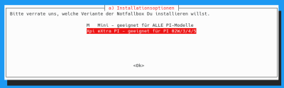 Natürlich kann die Notfallbox auch menügeführt, d.h. ohne ein fertiges Image installiert werden - z.B. wenn diese auf einem sich bereits in Betrieb befindlichen Raspberry PI zum Einsatz kommen soll. In letzterem Fall kann natürlich die Installation des Betriebssystemes vollständig entfallen.